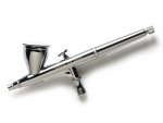 Farba mieszana jest z powietrzem wewnątrz aerografu. Ilość farby i powietrza regulowana jest płynnie. Dwufunkcyjnym przyciskiem spustowym reguluje się ilość powietrza (wciskając przycisk), oraz ilość natryskiwanej farby (odciągając przycisk do tyłu).